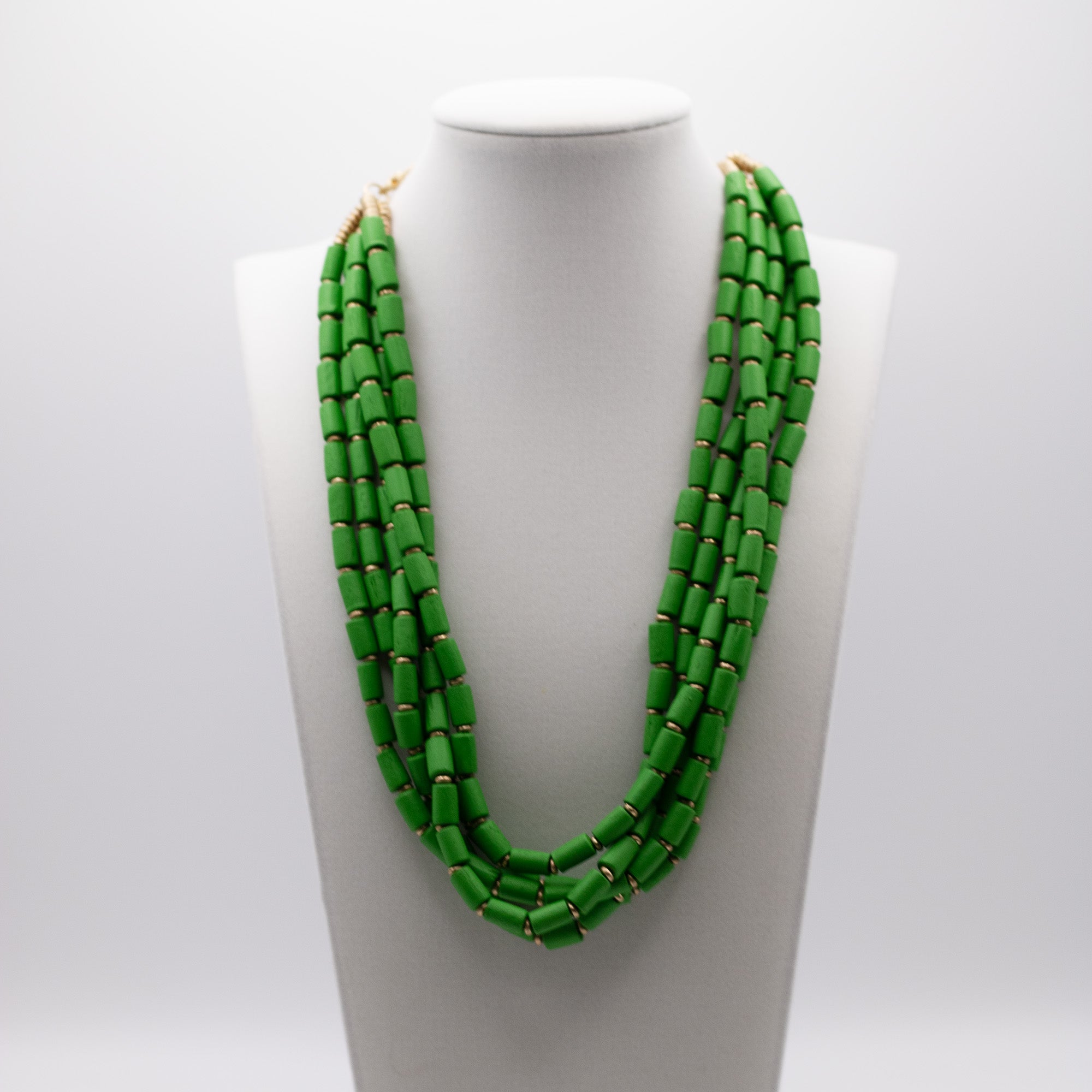 Lightweight Bright Green Wooden Beads with Gold Accents